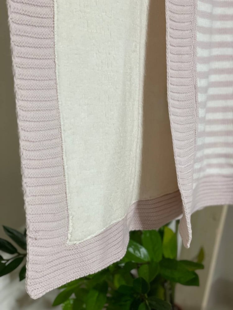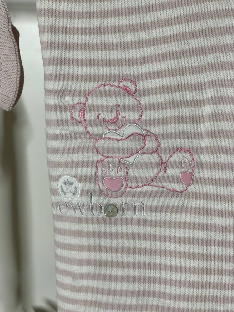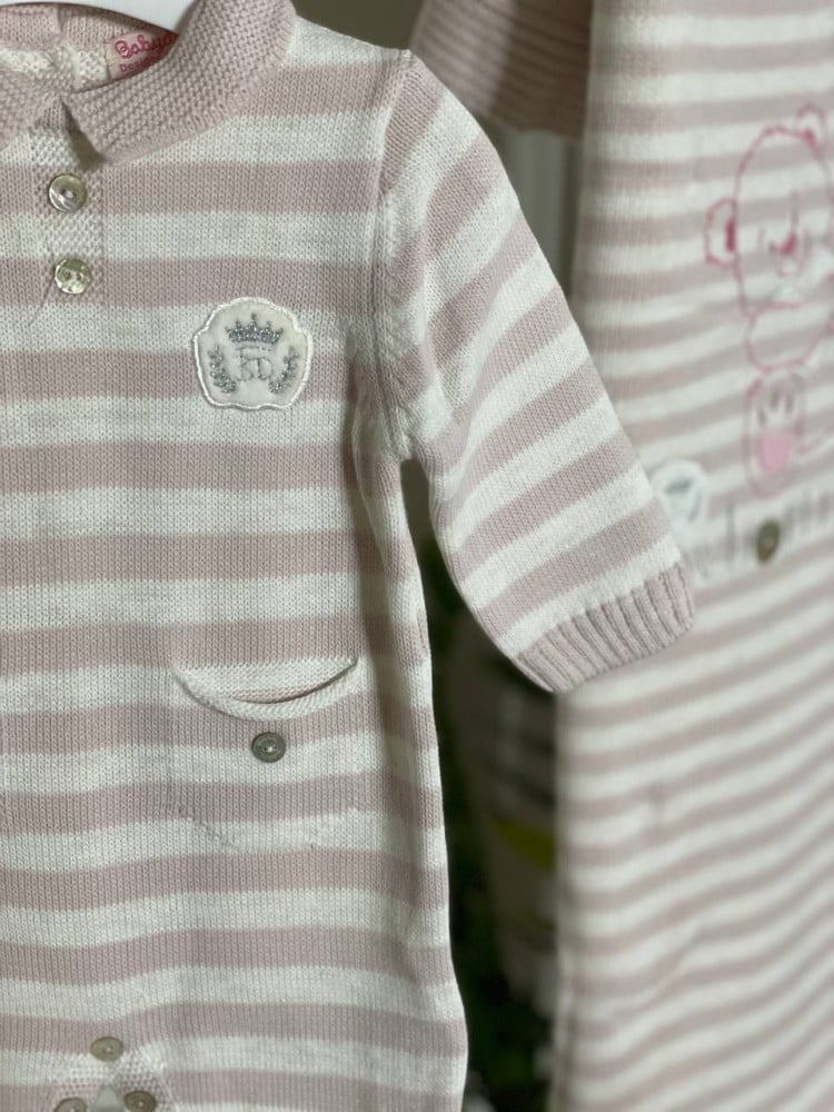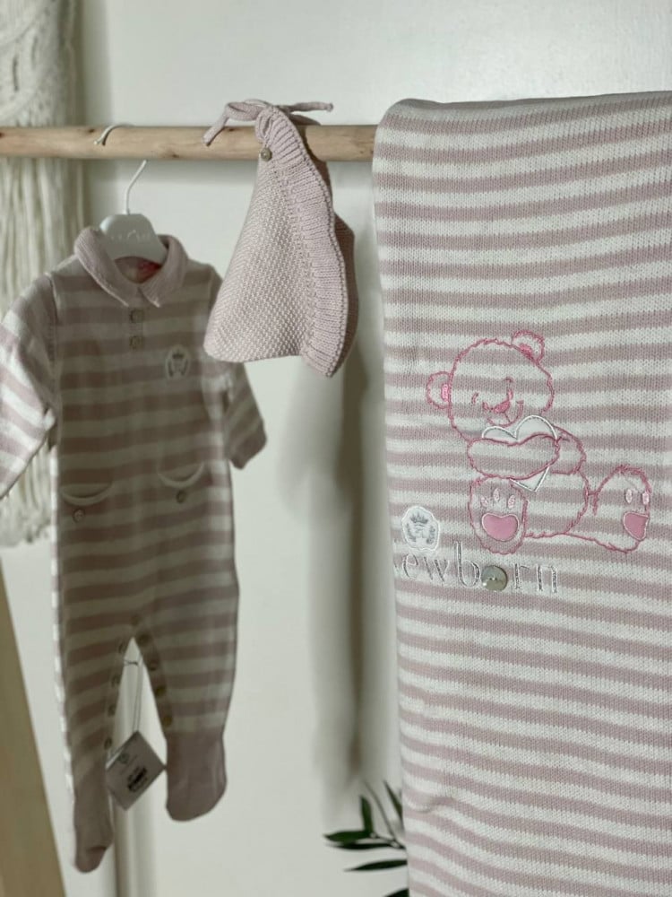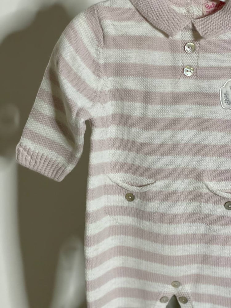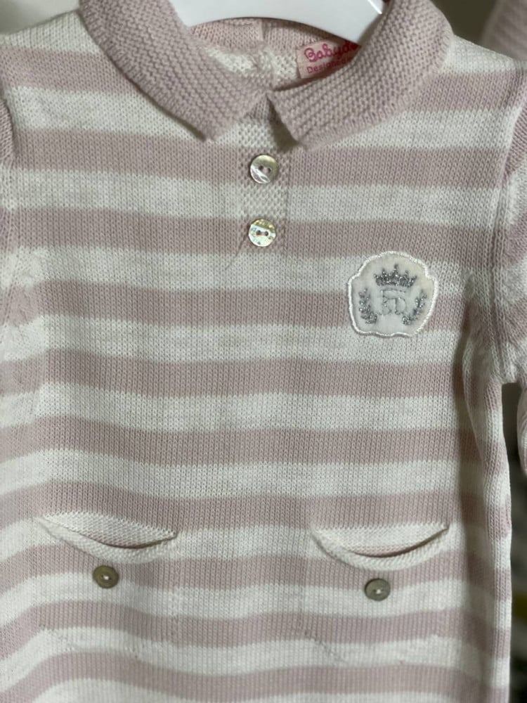 طقم تريكو مقلم للمواليد باللون الابيض والوردي بناتي