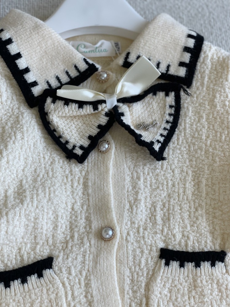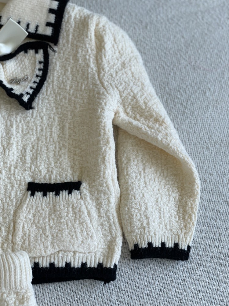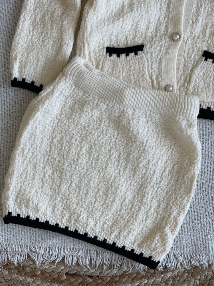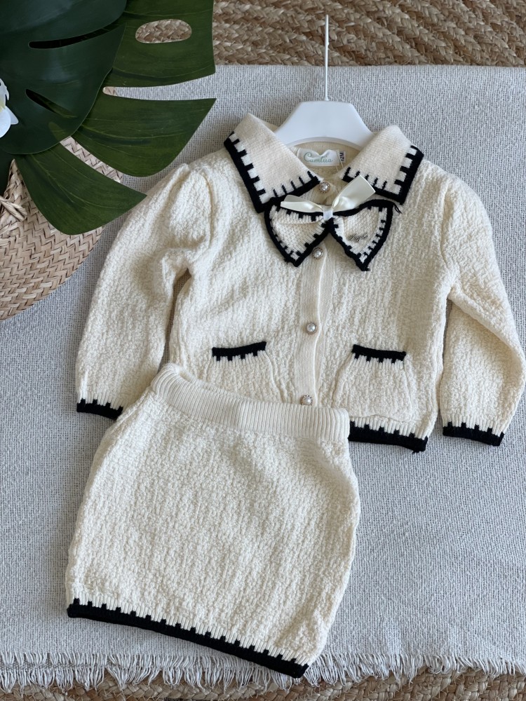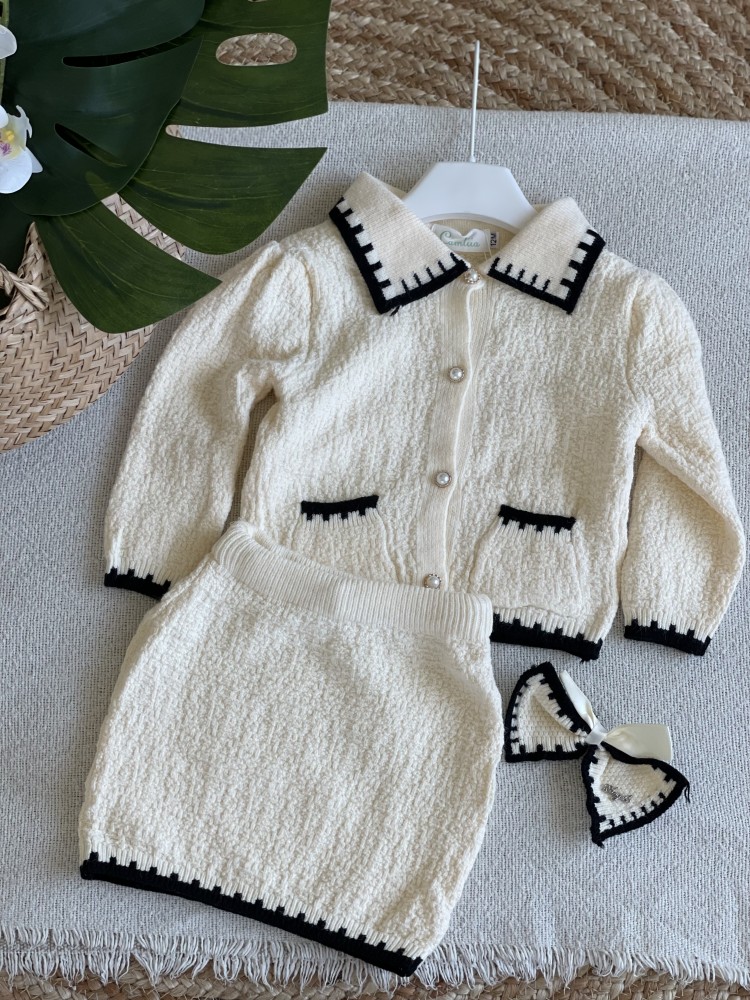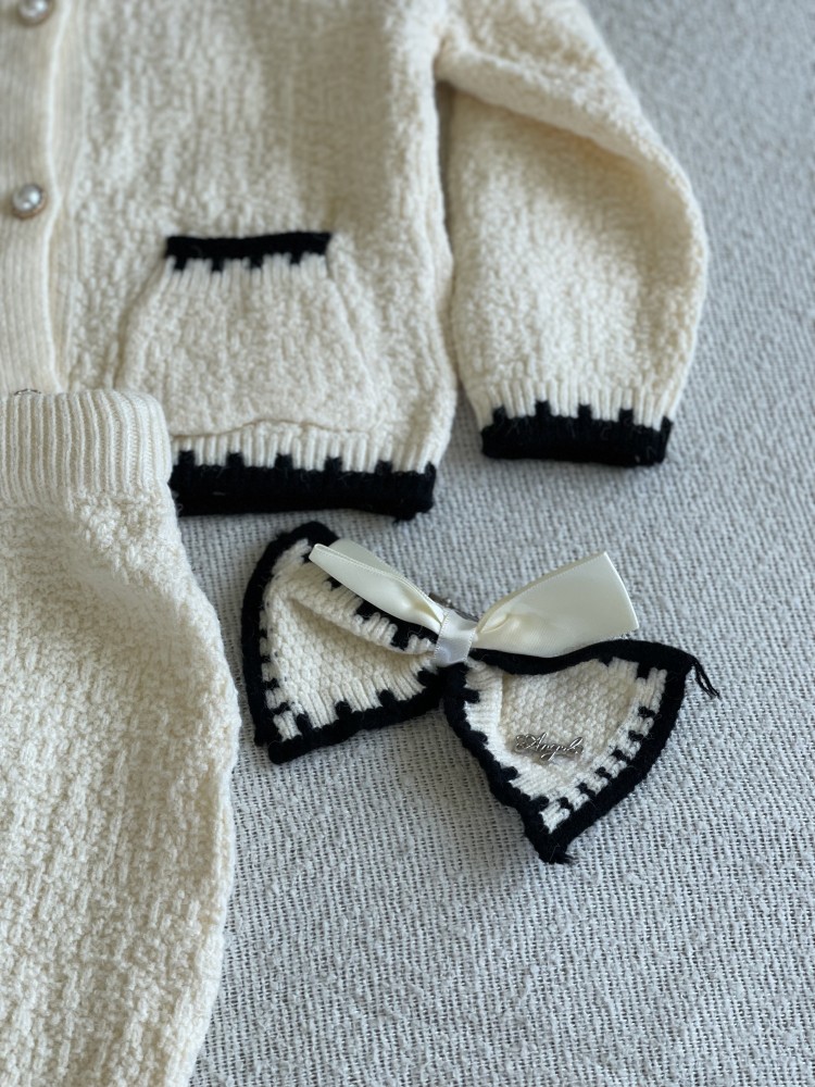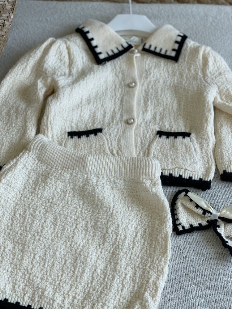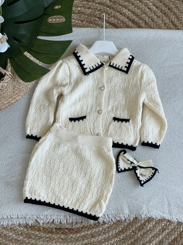 طقم شتوي ثقيل باللون السكري مزين بأطراف باللون الأسود مع فيونكة للشعر طقم مميز وآنيق ..