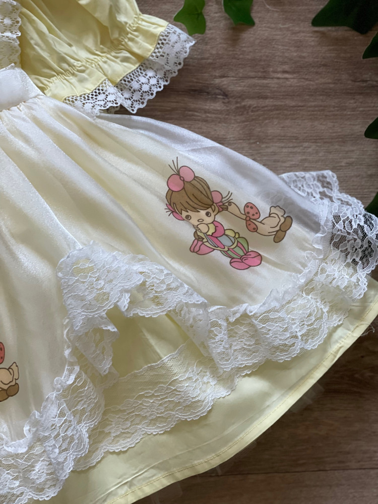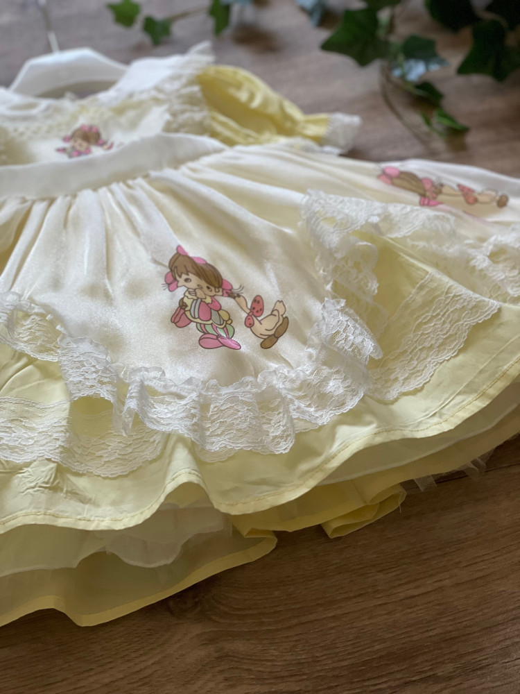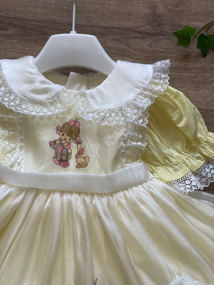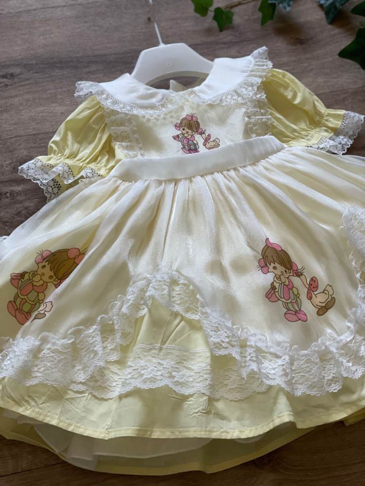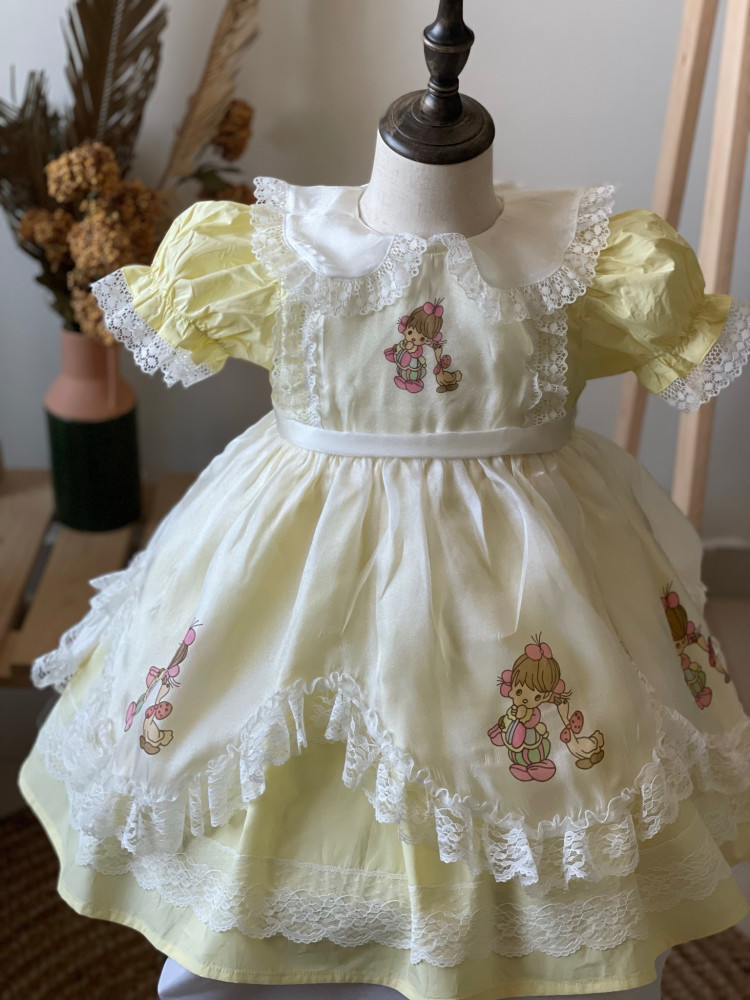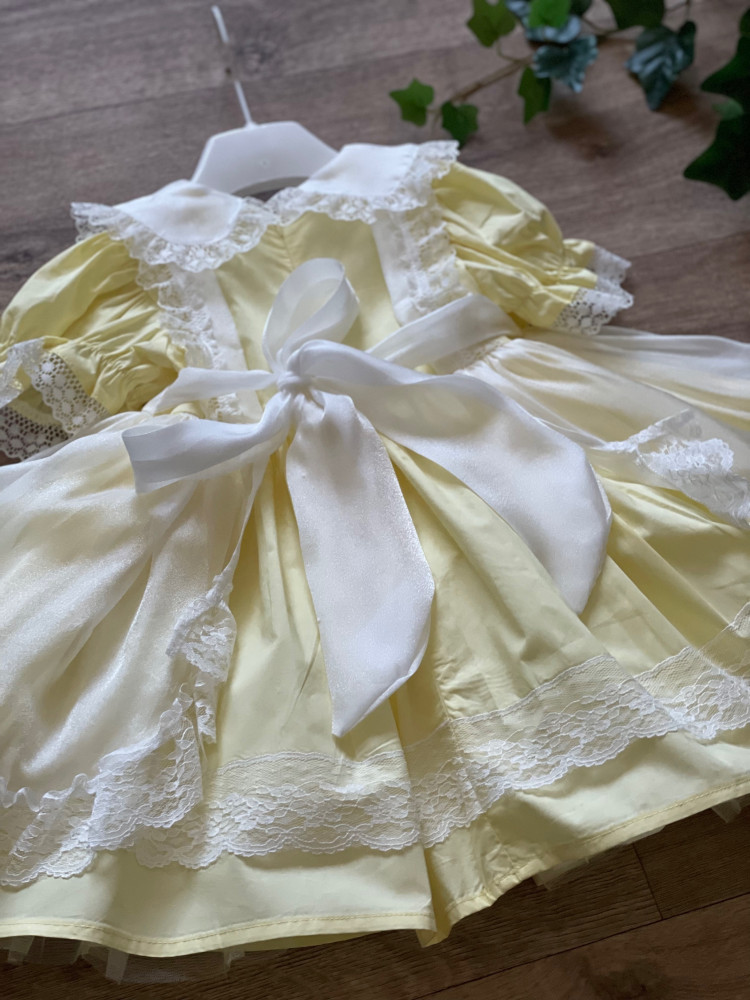 امنحي فتاتك الإطلالة الراقية في أقرب المناسبات السعيدة بالحصول على هذا الفستان الأنيق ، فستان صيفي باللون الليموني مزين بالدانتيل ..