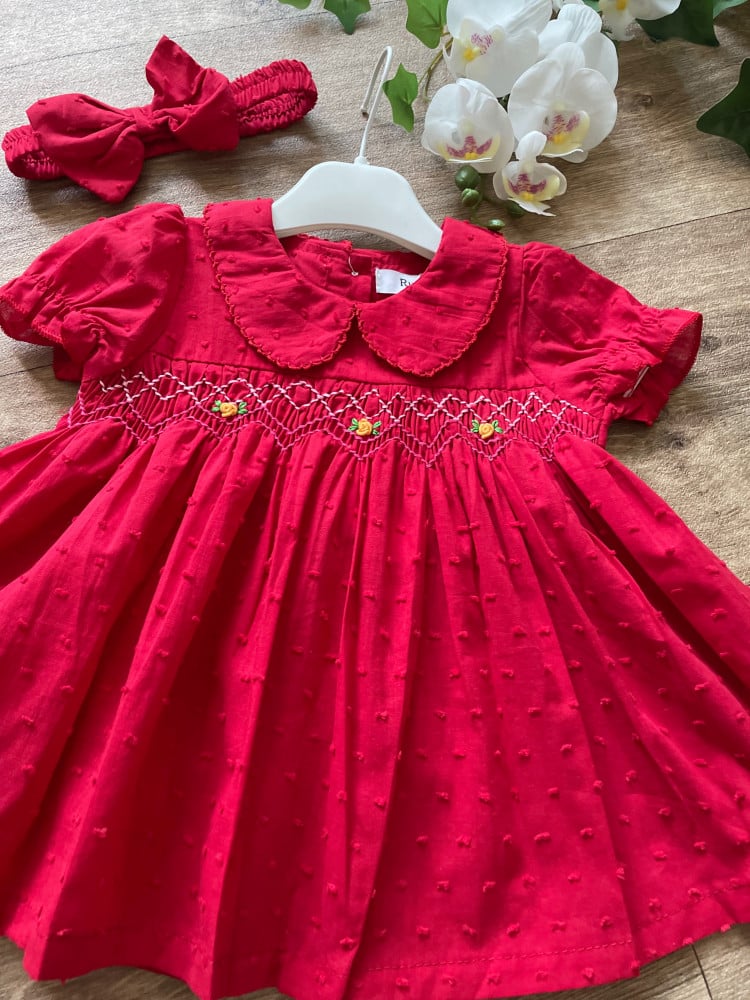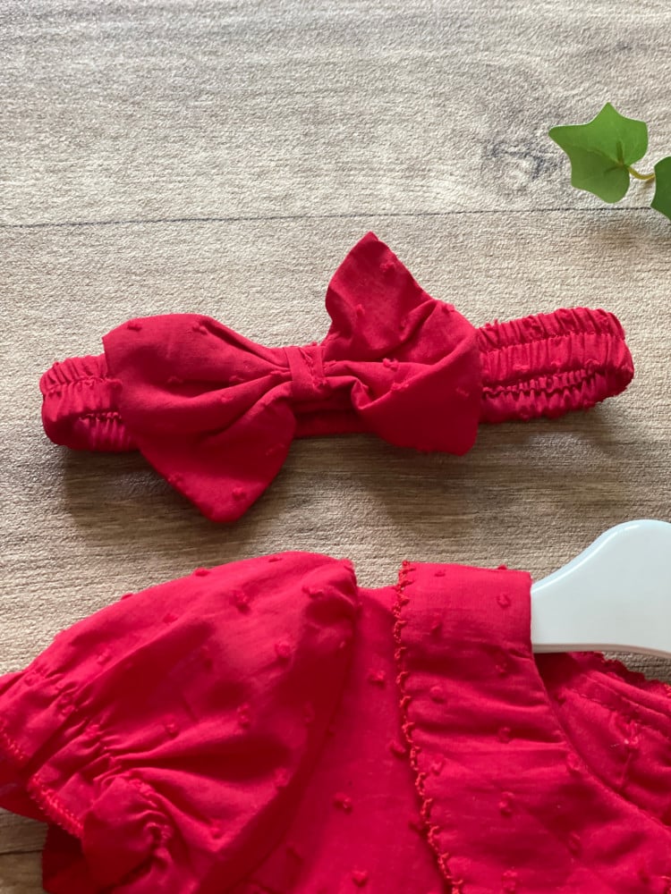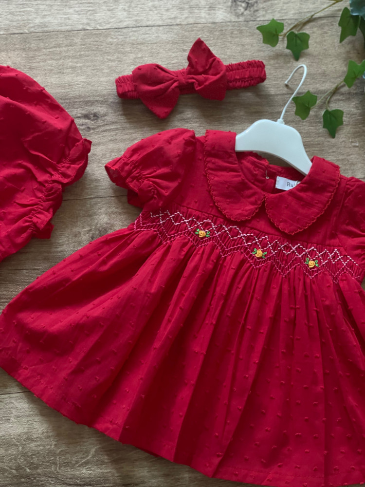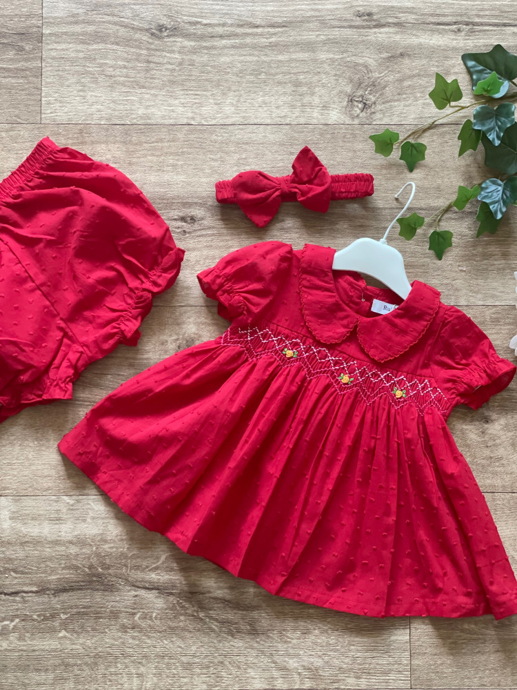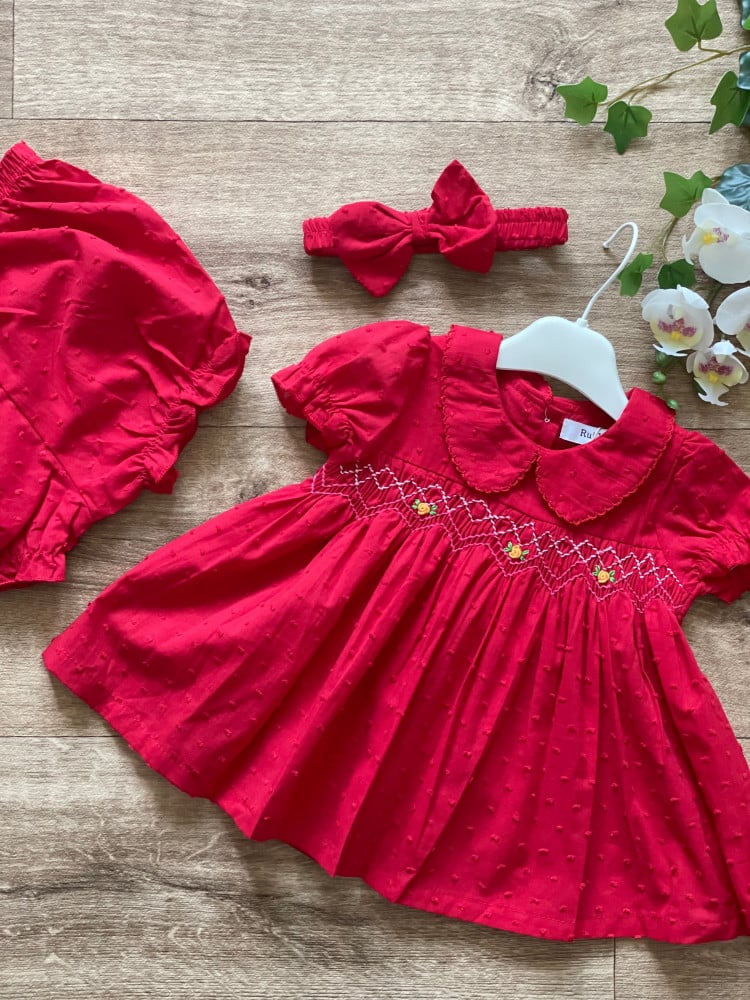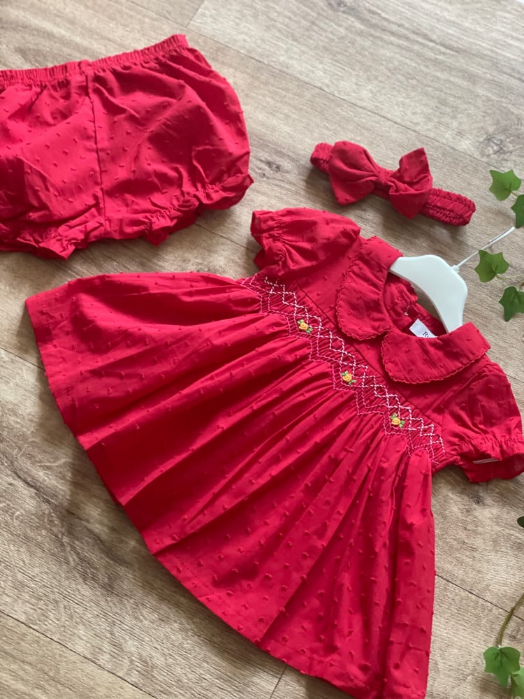 طقم مواليد سموكيد باللون الأحمر الجذاب ..
