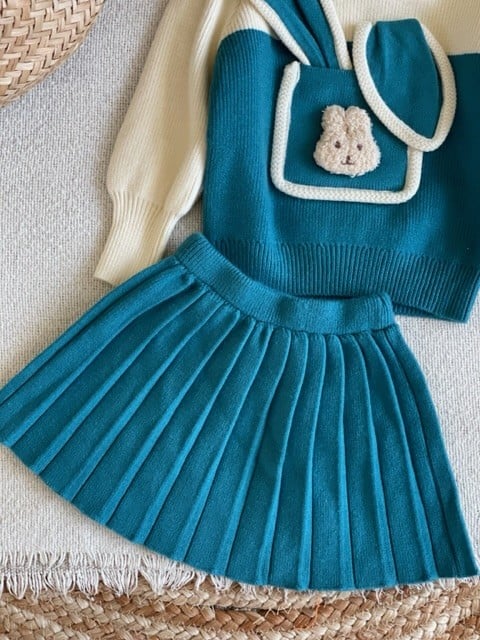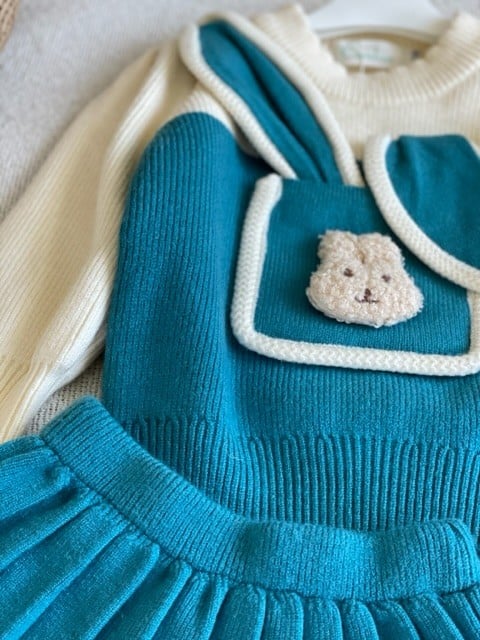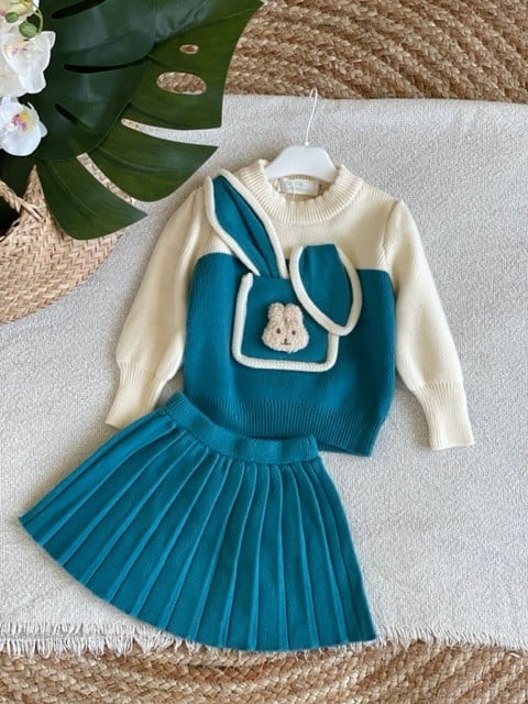 طقم الأرنب الجميل طقم شتوي ثقيل باللون التركواز والبيج ..