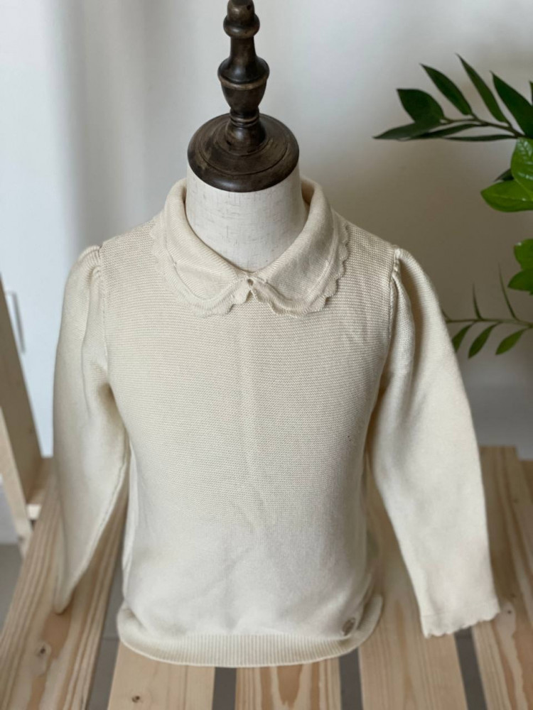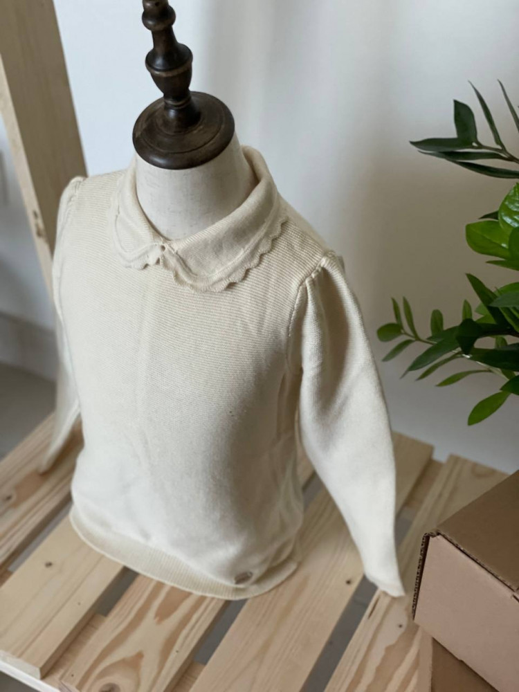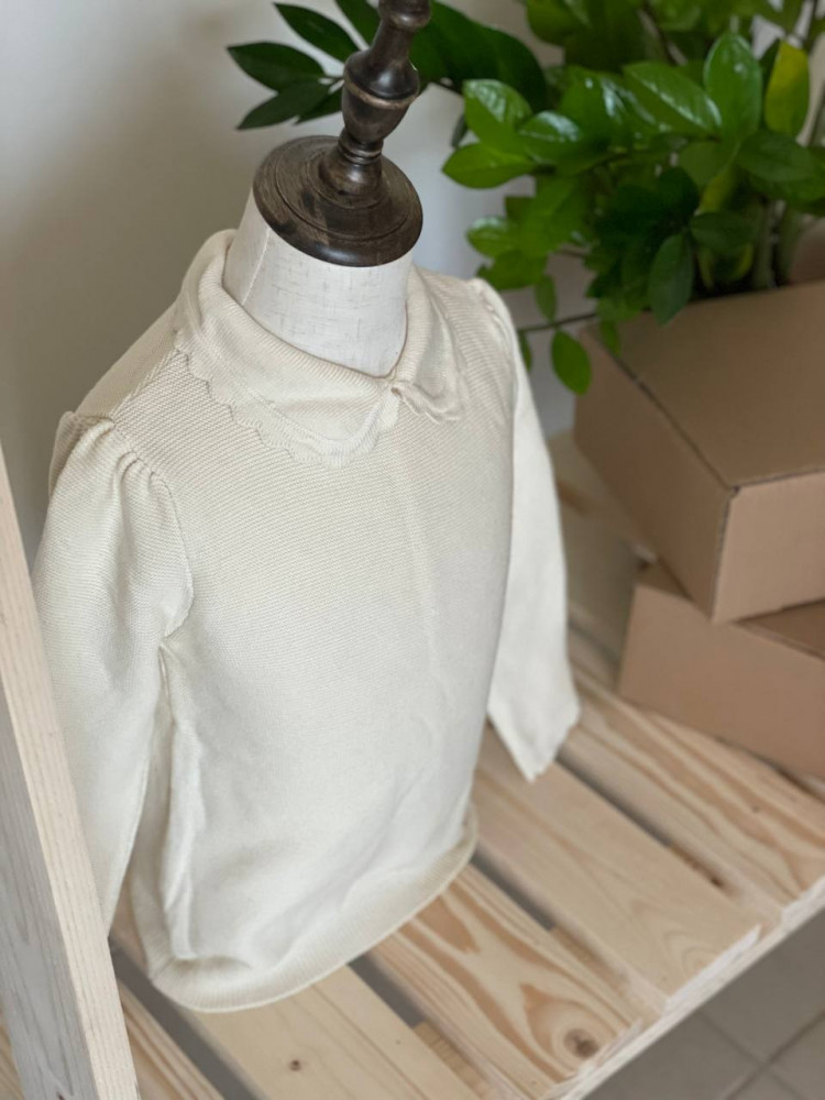 كنزة شتوية بأكمام طويلة أنيقة , مع كسرات على الكتف وقصة عنق جذابة لتعطي طفلتك جاذبية